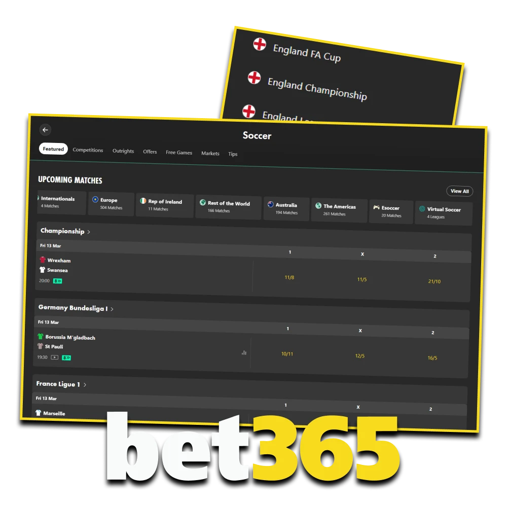 You can place a football bet at Bet365 in a few steps through the website or mobile app.